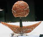 Orange Spun Plastic Lamp "Very unusual because of the gondola shaped base that acts as a planter for silk or fake flowers, if you so choose."