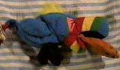 Hurley the Tucan "MADE A HABIT OF PUKIN' SPECIALLY WHILE UP IN THE AIR HIS FRIENDS WOULD ALL RUN COZ HIS BARF WIEGHED A TON AND THEY DIDN'T WANT CHUNKS IN THIER HAIR."